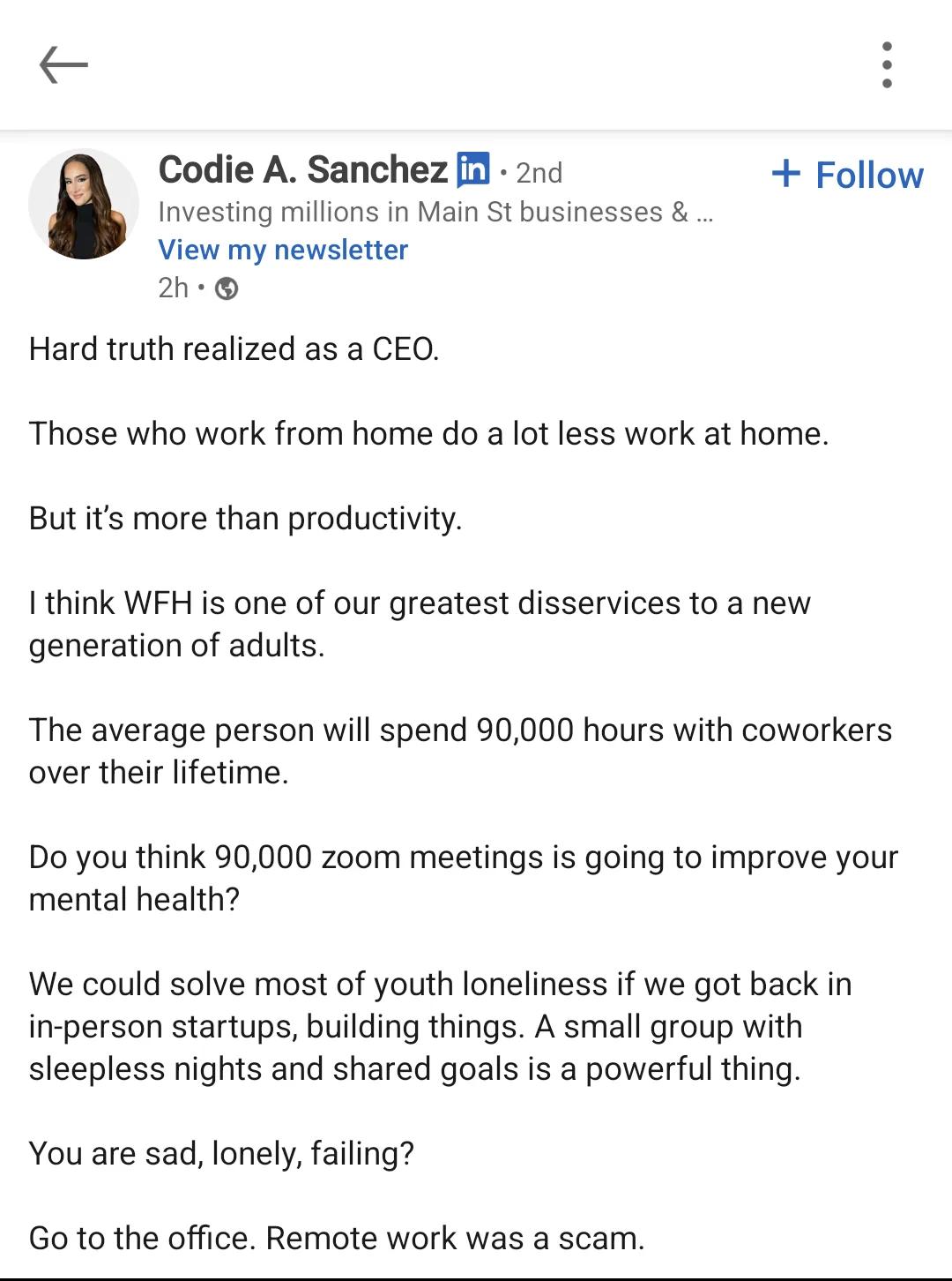 alphacyberranger@sh.itjust.works to LinkedinLunatics@sh.itjust.worksEnglish · 6 months agoYouth loneliness is cured by Adults going into the officesh.itjust.worksimagemessage-square106fedilinkarrow-up1542arrow-down118