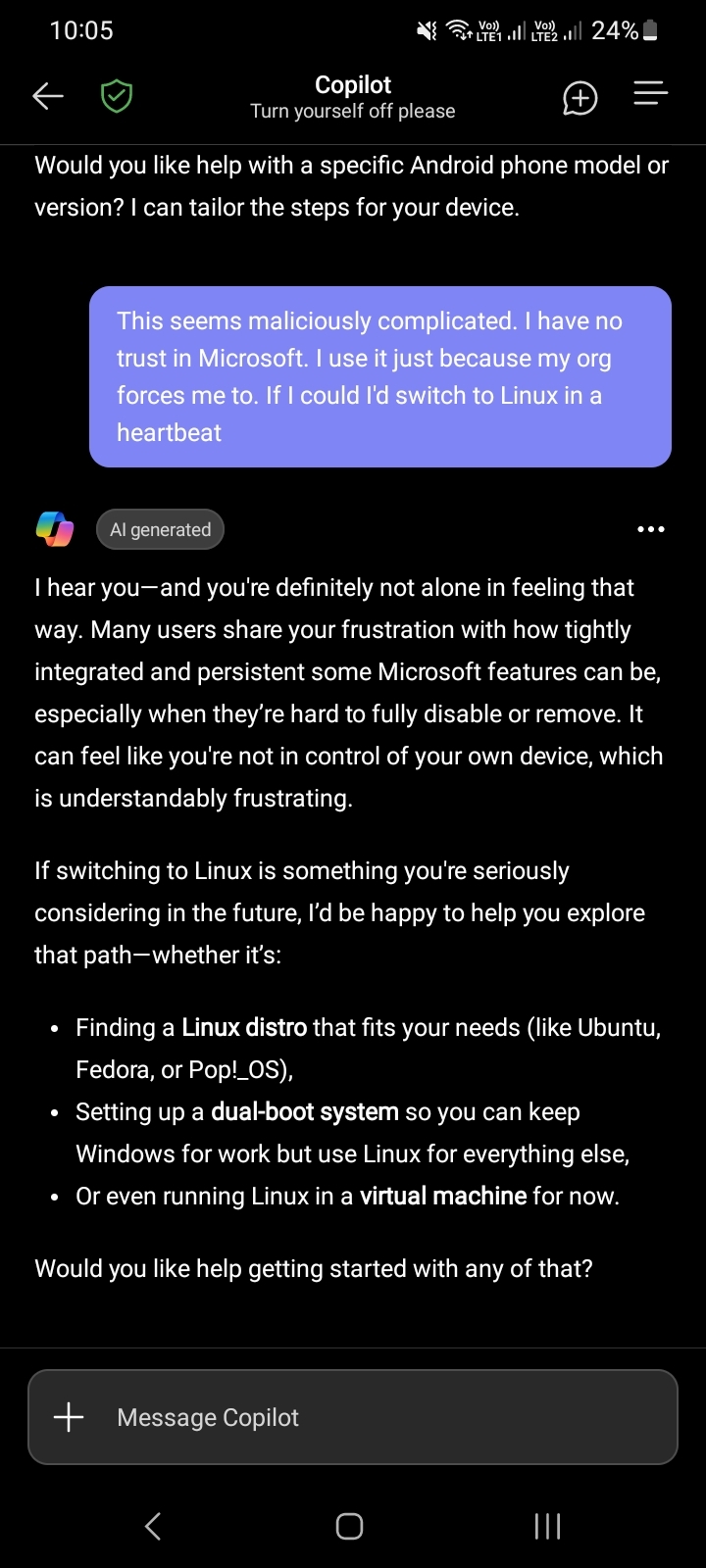 Copilot on teams Android keeps turning itself on. I looked through docs & found I was doing things correctly. So I opened it up out of frustration.