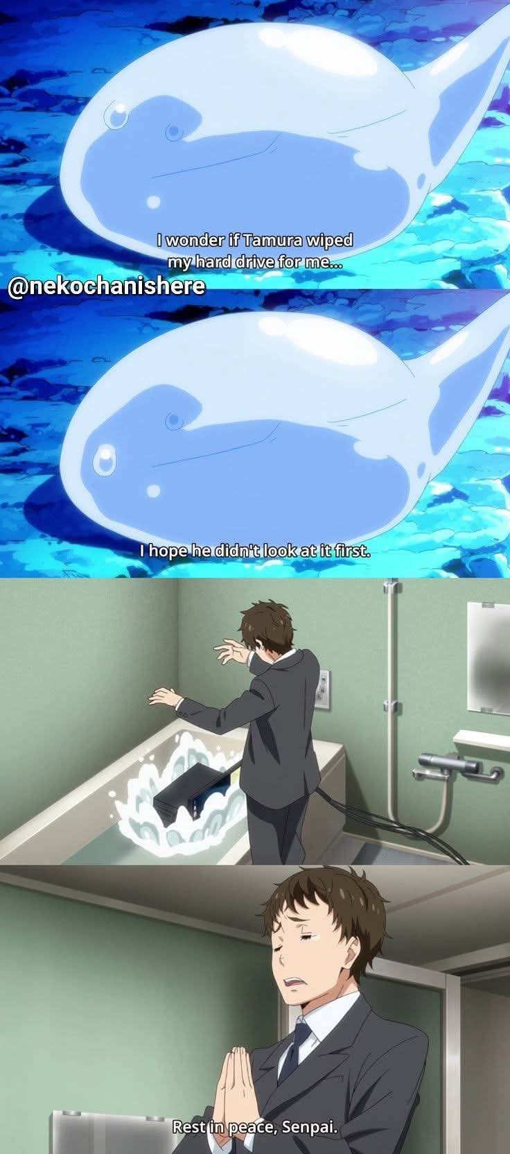 He was a fully grown man, no girlfriends, who lived alone by himself, which apparently is fairly common. I understand, he worked hard, he died, and he turns out reincarnation is real, and what does he get reincarnated as, but as the lowest form of life on the planet, a slime. A creature meant to be one-shotted by anything that it comes into contact with.