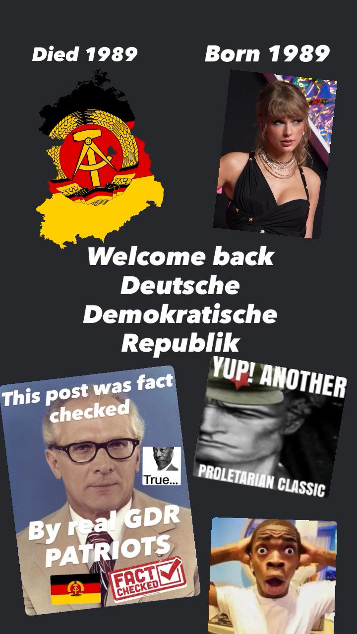 Mein Gedanke war, dass – aus welchen Gründen auch immer – “die Existens der DDR” XOR “das Leben von Taylor Swift” ist.
