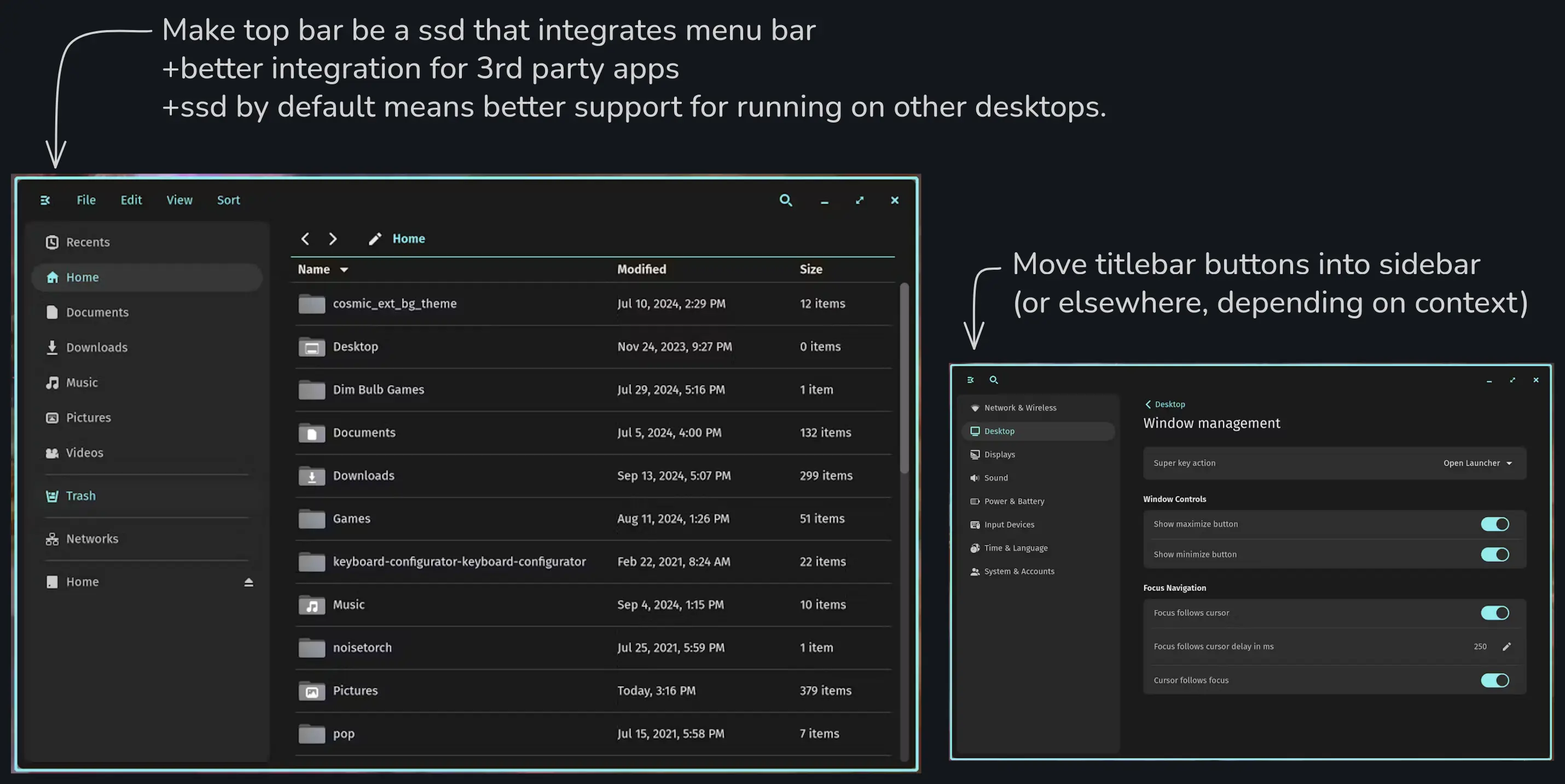 This proposal definitely has downsides, but I think it’d be a definite improvement and align with COSMIC’s philosphy, so tell me what you all think!