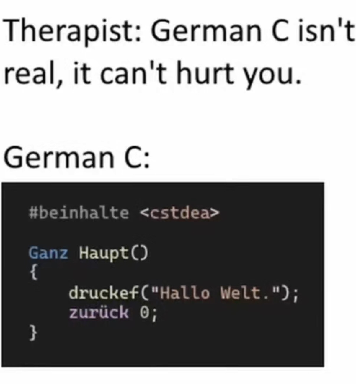 The code screenshot is pretty nice though. Actual grammar in there, full sentences that “Goethe would be proud of”.