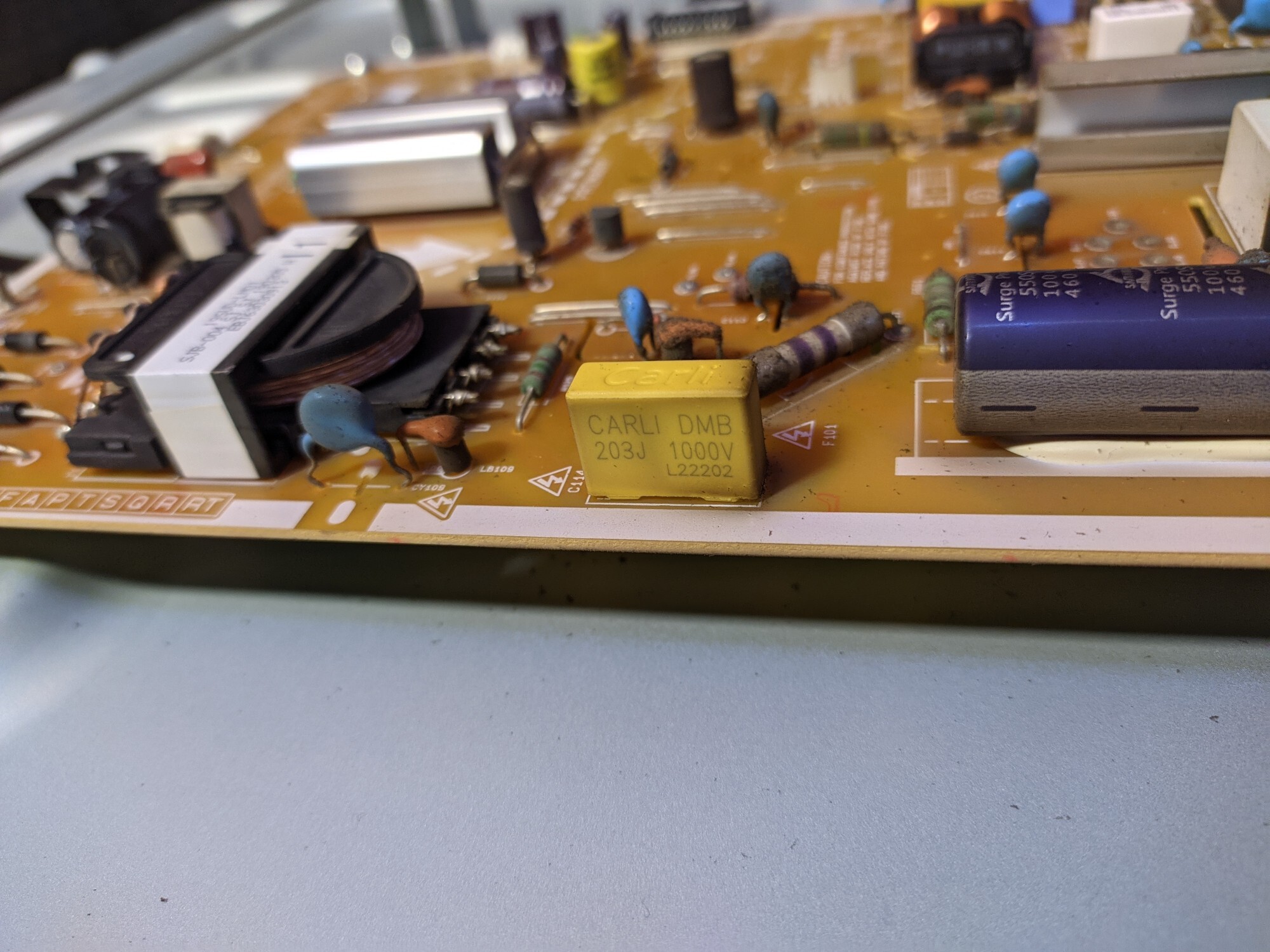 Looking at the streaks around el28, could the large blue electrolytic have failed?