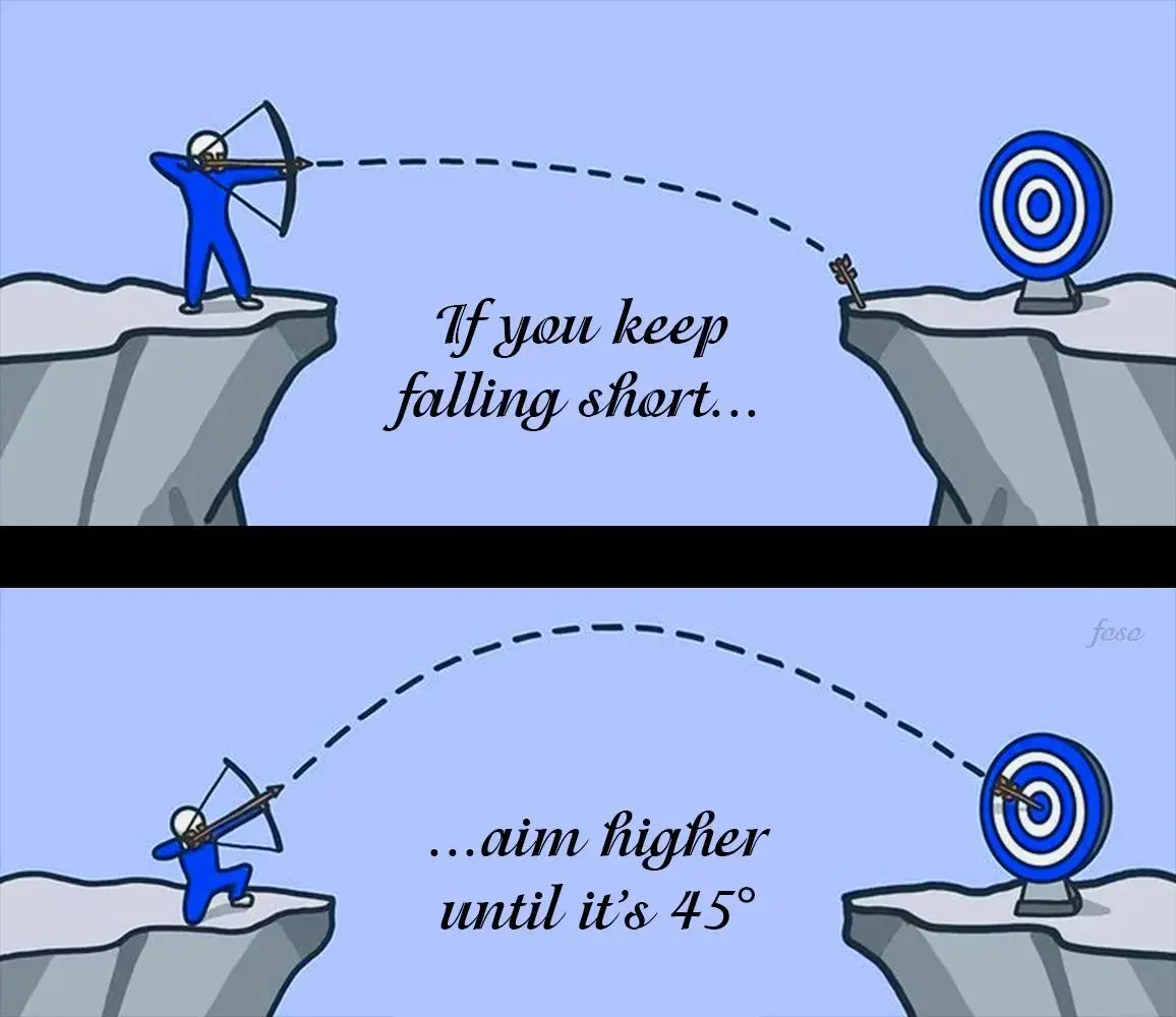 Also if you need your arrows to land all at the same time so you can fool the enemy into thinking you are many archers fire like this.
