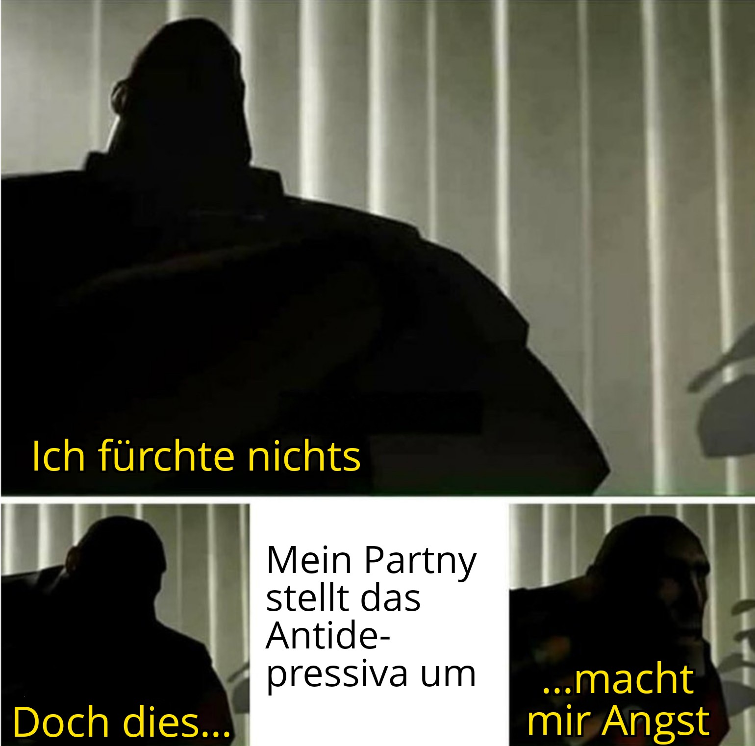 minus-squareRanzigFettreduziert@feddit.orgOPlinkfedilinkarrow-up5·2 months agoMeine Frau hat gewisse Absetzterscheinigungen und Stimmungsschwankungen des Todes, an sonsten ist alles tutti.