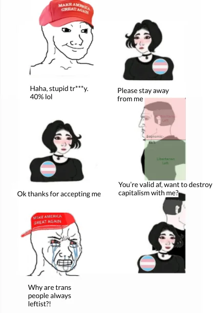No but people do ask why so many trans people are leftists as opposed to regular ass liberals.