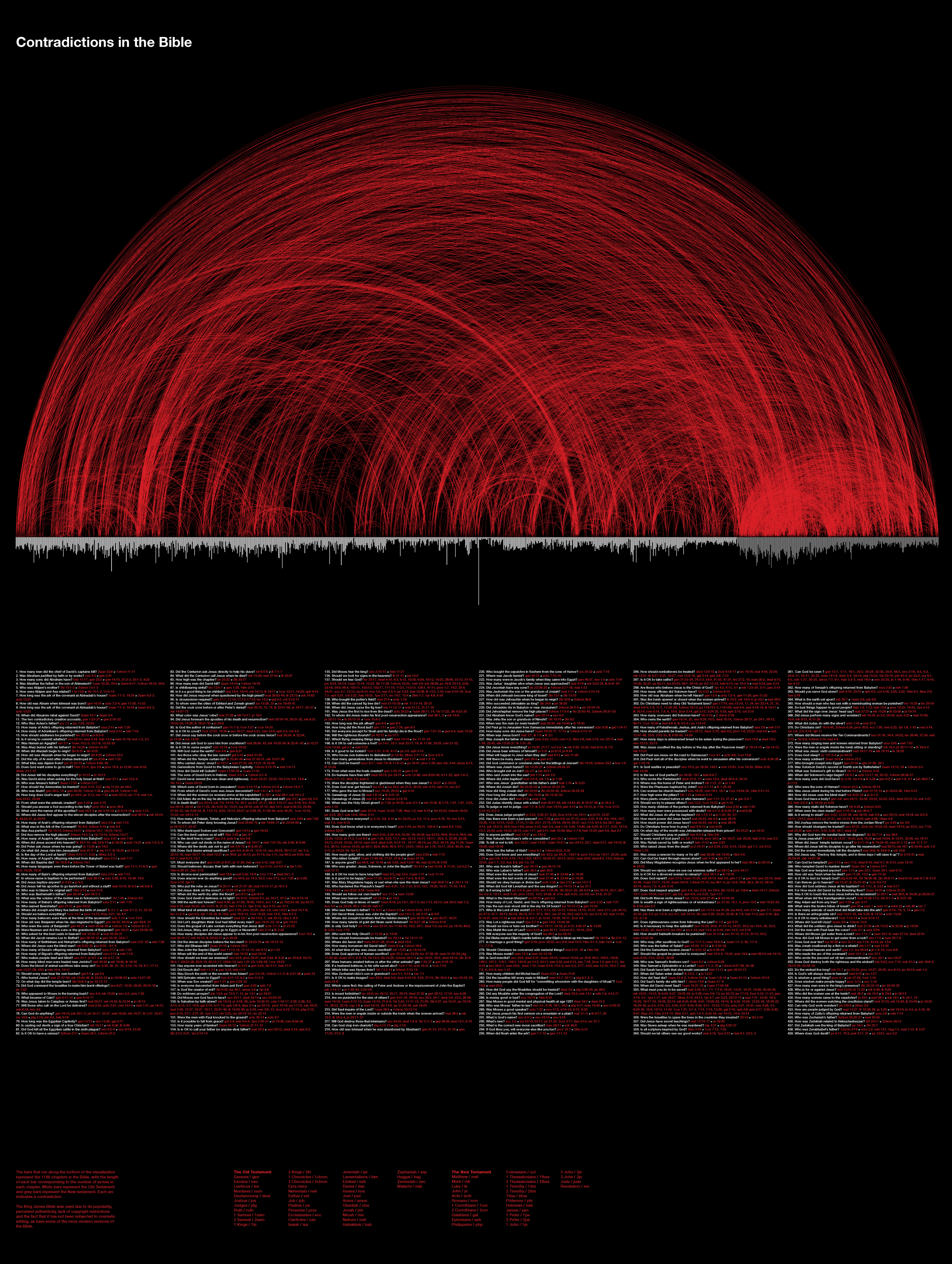 So, I have a background in religious history and texts, I took five random contradictions and checked them out, just for fun. Every single one of those either, missed the context from neighboring passages, or missed the point completely. I’m not here to say that there are no contradictions in the Bible, but the work here is shoddy at best.