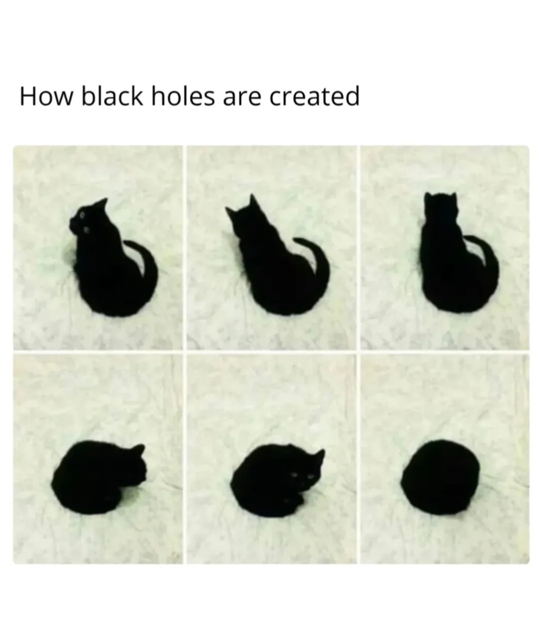 I tried to calculate how much this kitty would have to weigh to make a blackhole and… I found 3.13*(e)^(-27). Society is so fucking lucky I didn’t decide to study math