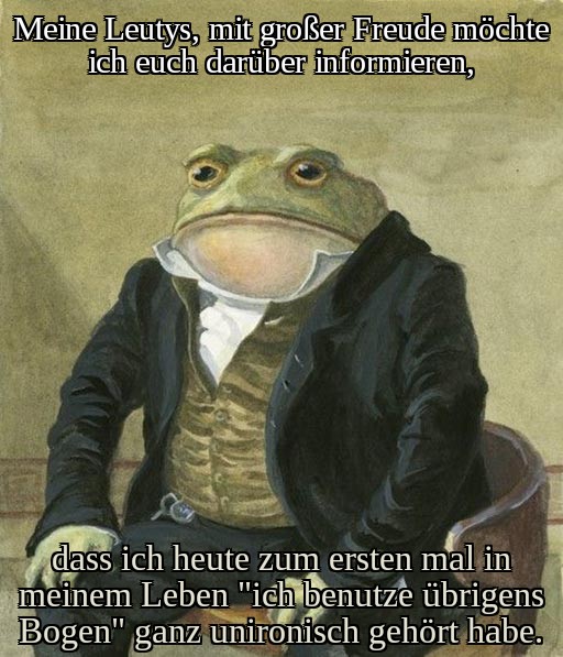 Aber nicht in Zangendeutsch oder? Das benutzt niemand unironisch hoffe ich