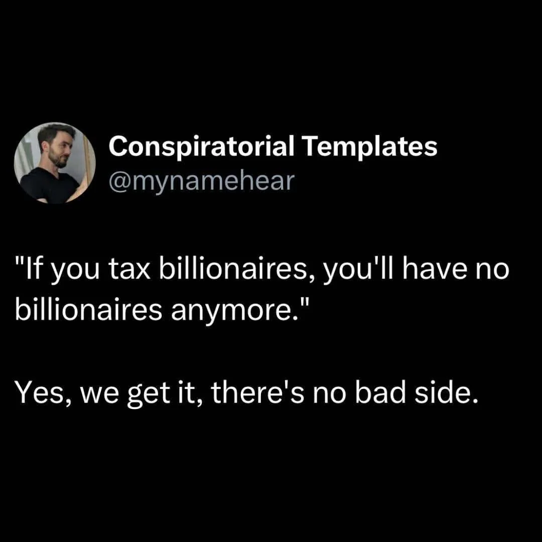 Which ignores the fact that 1) They already attempt to pay zero taxes, 2) There is no point in having billionaires here if we can’t tax them properly and, 3) Billions of dollars can only be amassed on the back of rampant exploitation: billionaires shouldn’t exist in the first place.