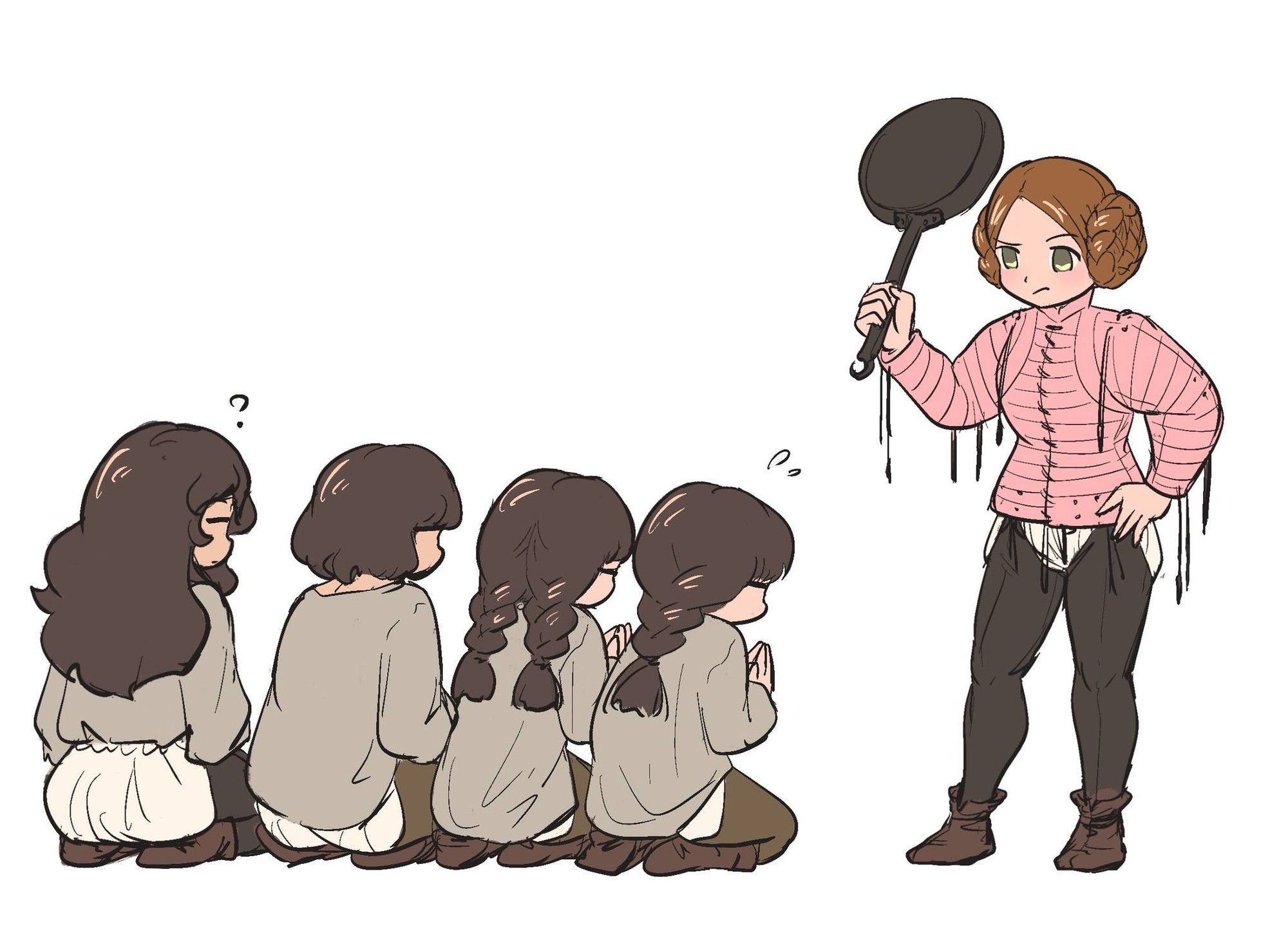 minus-squarePugJesus@piefed.socialOPlinkfedilinkEnglisharrow-up2·1 month agoSubordinates being chastised by a superior with a frying pan for threatening effect.