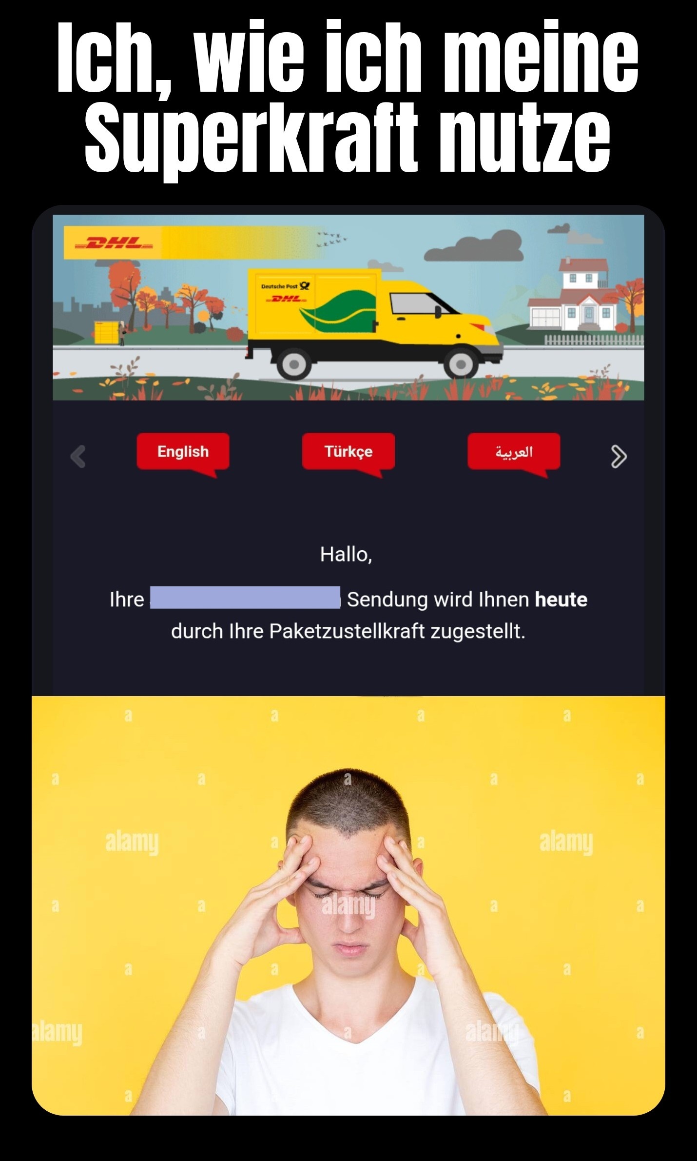 So stelle ich mir das vor, wenn DHL mir mein Paket angeblich an mich zugestellt hat, ich aber in der Uni war.