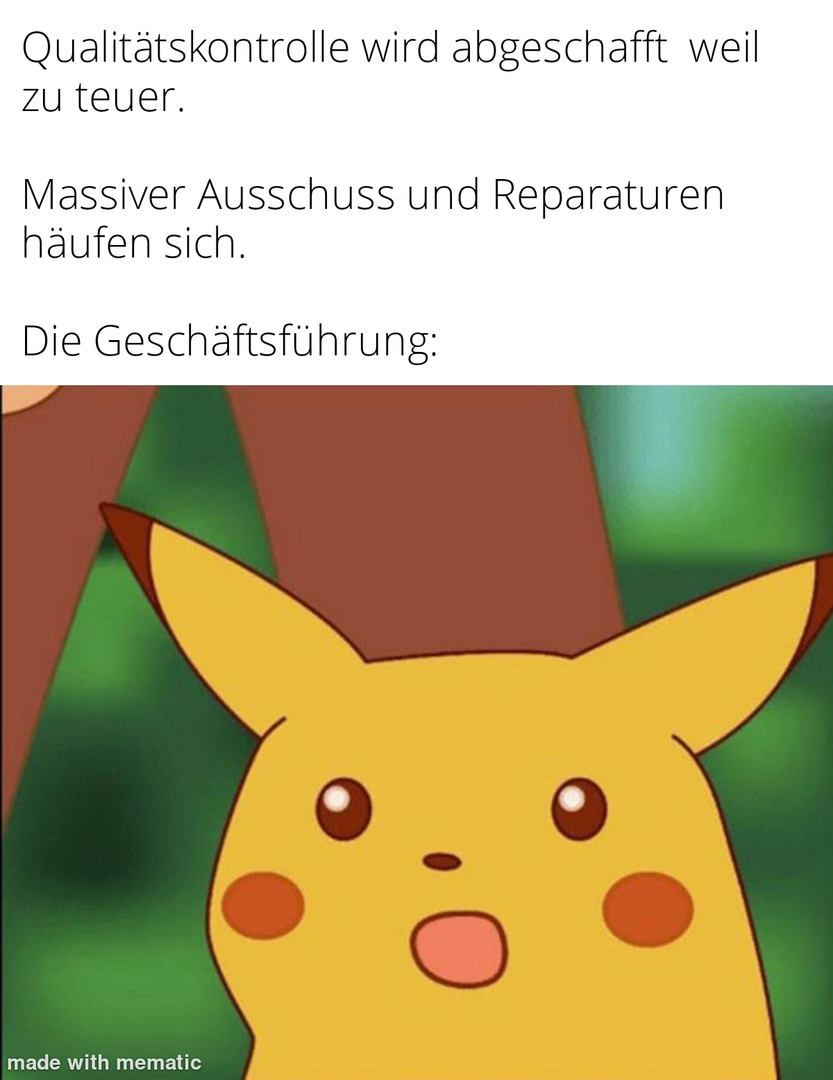 So was ähnliches hat meine letzte Firma auch geschafft. Anstatt hochwertigen aber teureren Stahl zu kaufen, kaufen die lieber billigen und produzieren wochenlang nur noch Ausschuss. Dann wechseln sie zum alten Lieferanten zurück, der natürlich nicht mehr den alten vergleichsweise günstigen, da lange Geschäftsbeziehung, Preis verlangt.