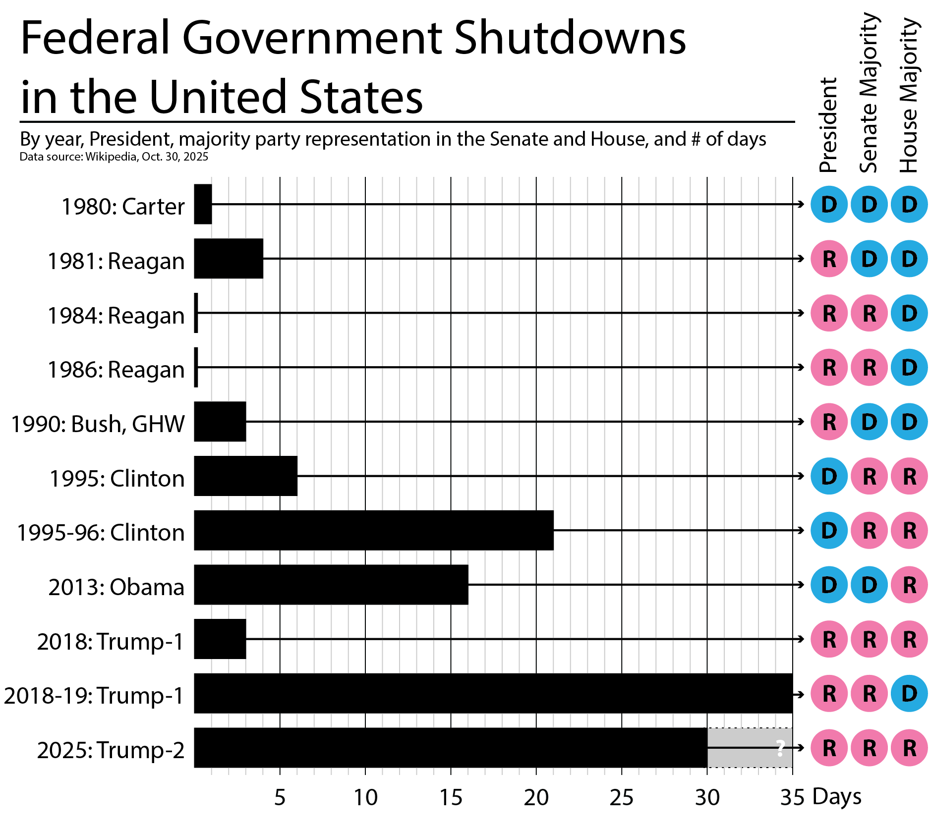 is a bit old, shutdown ended the 12th and lasted 43 days https://en.wikipedia.org/wiki/2025_United_States_federal_government_shutdown?wprov=sfla1