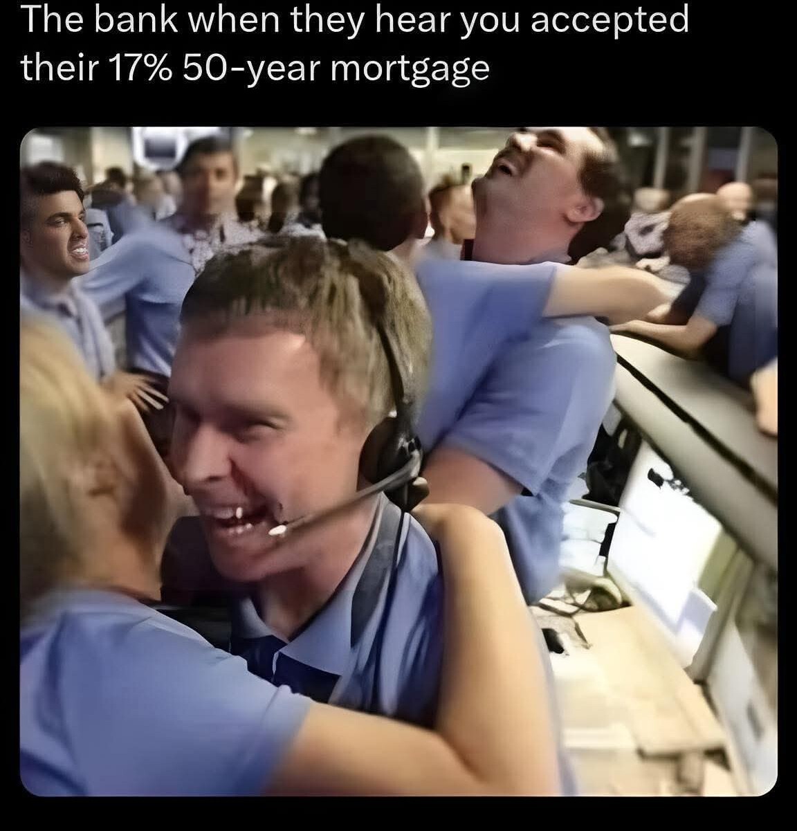 The even bigger joke is on you because mortgage is literally a word that means “an engagement until death”