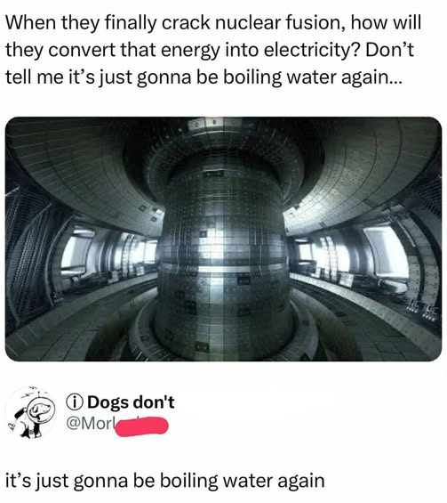 It’s not really a problem, it’s just funny that so many forms of power generation we have are just boiling water to make steam that spins turbines.