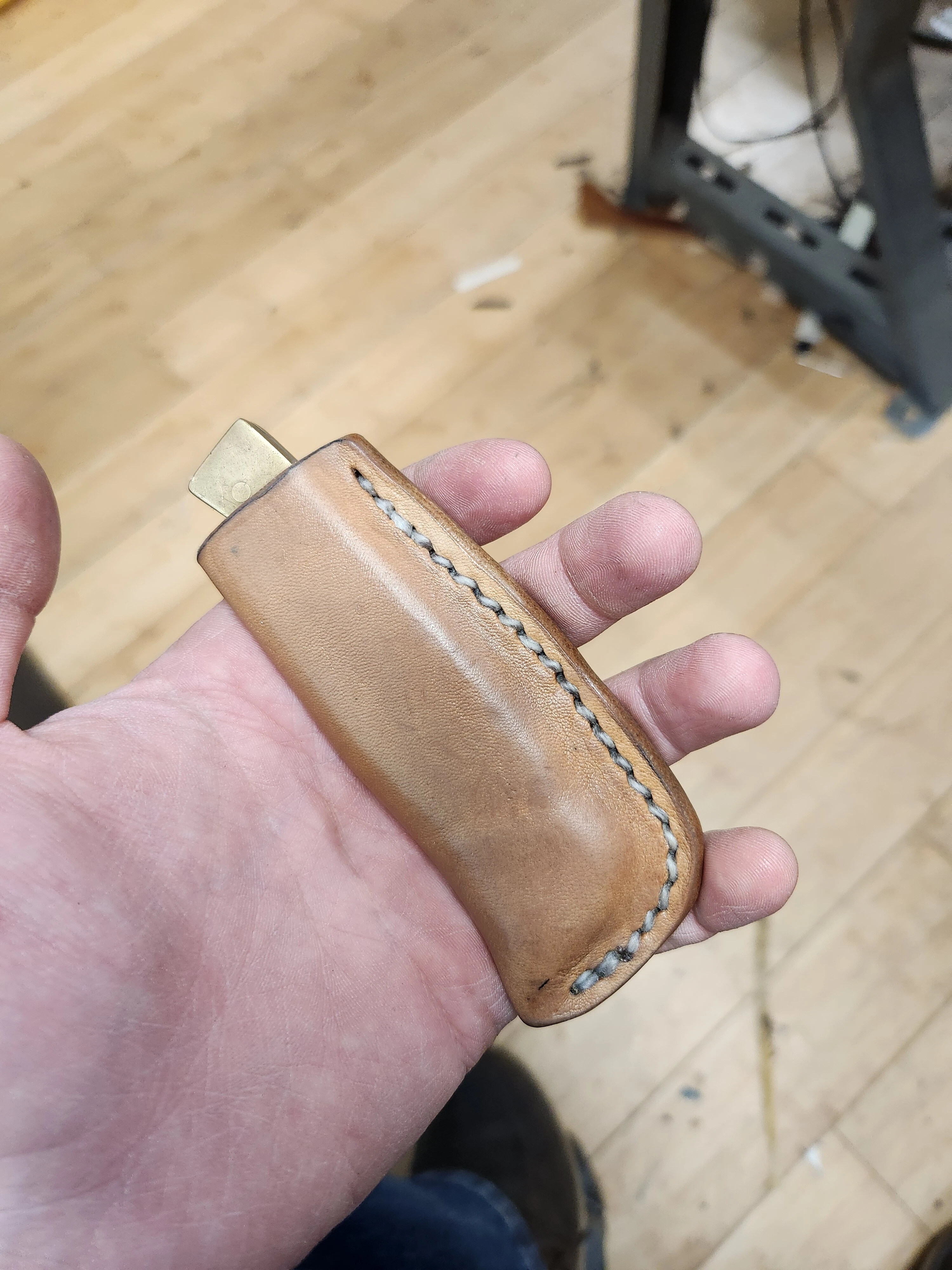 If you’ve a bigger piece of leather, you can make a wing on each side with a wide hole that the belt can go through.