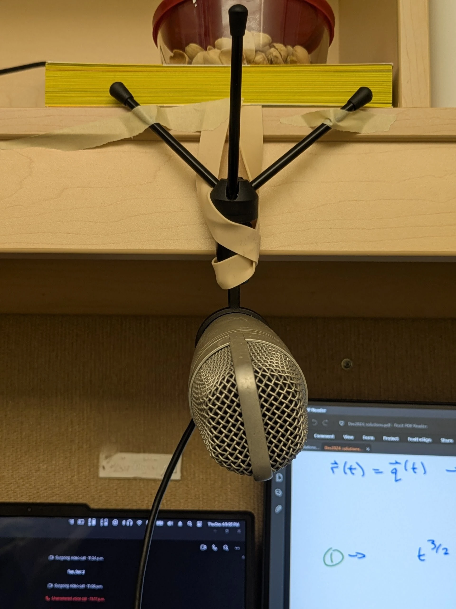 indeed that piece of tape has been lost to the trash, but without it gravity tilts the mic at the perfect angle for where I usually sit, so that’s a bonus.