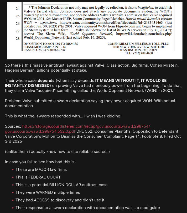 Unless I’m missing something, “valve’s own website’s admission” is just a Steam community submission? That’s like saying Facebook admits that the government is run by reptilians and birds aren’t real and citing some boomer conspiracy theorist’s posts as the primary source.