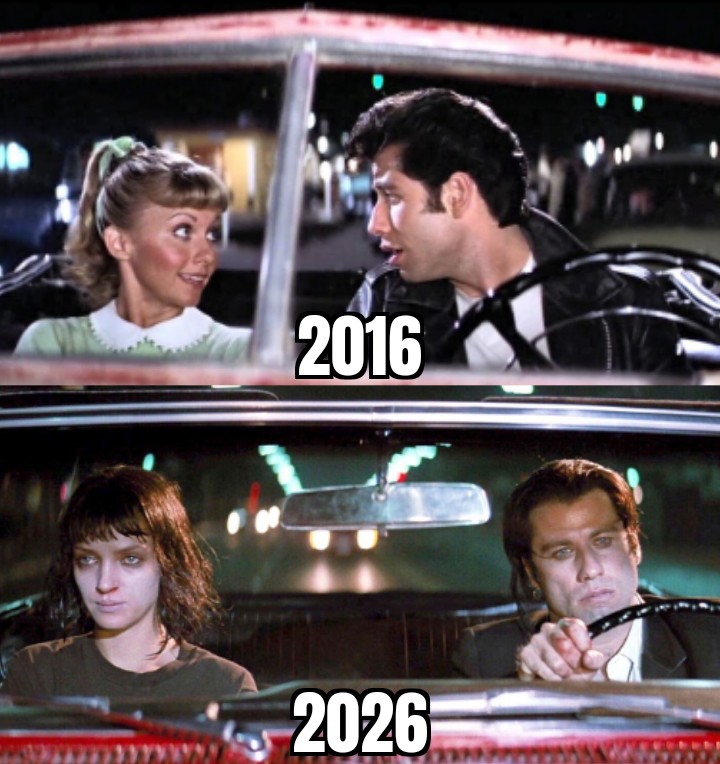 Ich hab Grease nie gesehen und daher auch dieses tolle Bildzitat in Pulp Fiction anscheinend übersehen. Wow!