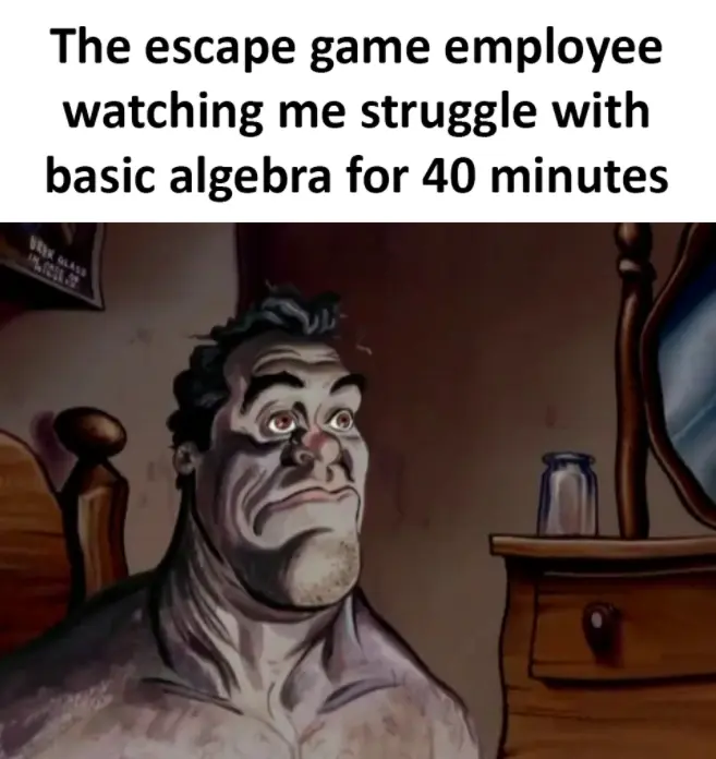 Fscape rooms should be physical, why the fuck would i pay an uncomfortable amount of money just to find the code to 3 combination locks? Have me repair the room’s ventilation system such that it sucks down the key from inside a vent!