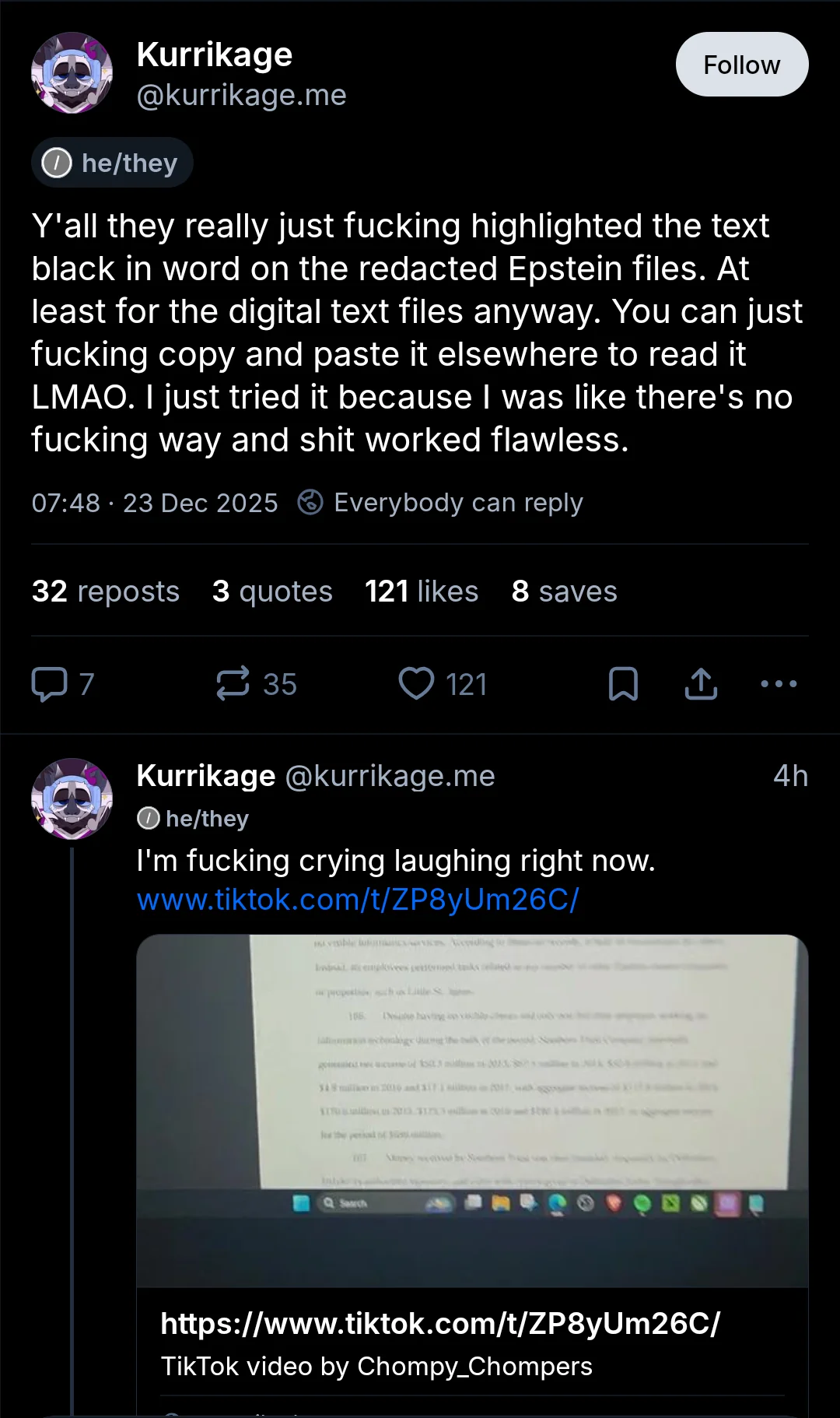 I think it’s impossible that someone who has the authority to blackening the Epstein Files is that dumb/unknowingly. This can’t be coincidence.