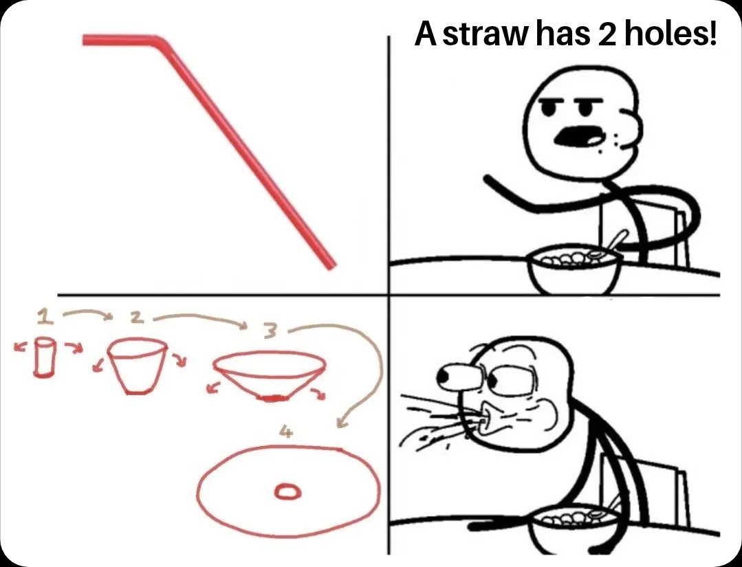 So, infinite holes. Just like a line has infinite points. And, a longer straw has a bigger infinite number of holes.