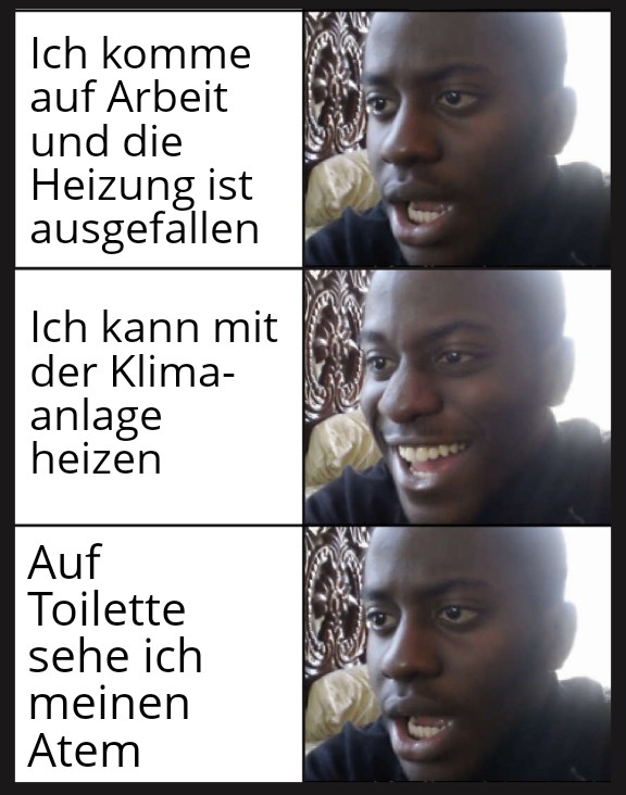 vielleicht ein Problem im öffentlichen Dienst, war bei mir an der Technischen Hochschule auch so - nur dass wir keine klima anlage zum heizen hatten