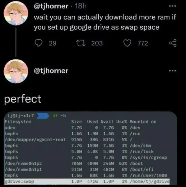 Wow, someone finally let us download more ram in linux