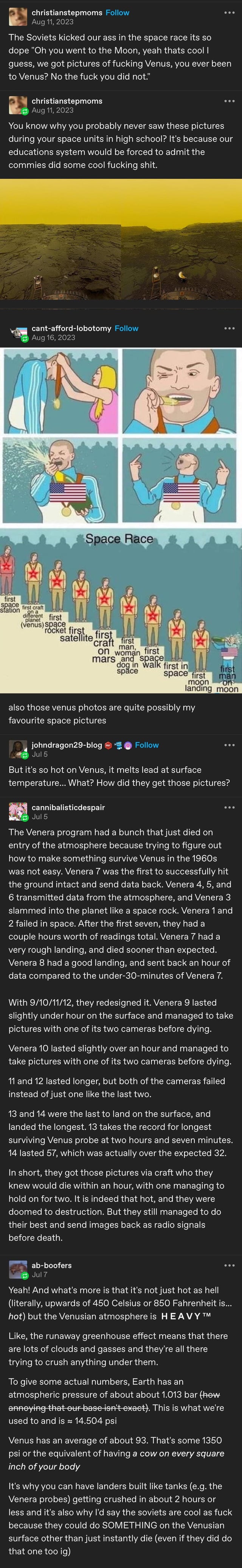 This has some tankie level vibes. It’s referencing the Cold War era. Though I seem to remember as a kid in the 80s learning about Russia’s Venus crafts. This is like reverse propaganda.