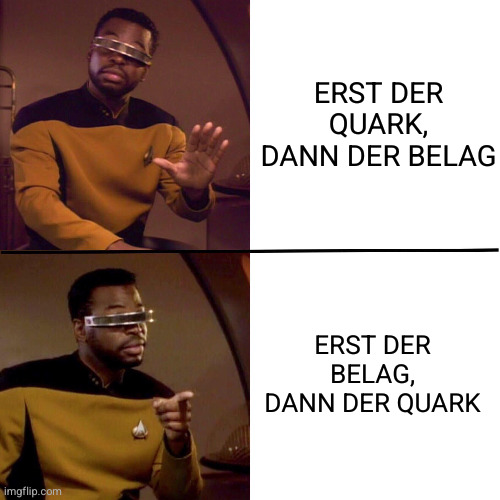 Das sehen auch nur Werbefuzzis anders, weil Marmelade auf Quark besser aussieht als Quark auf Marmelade.
