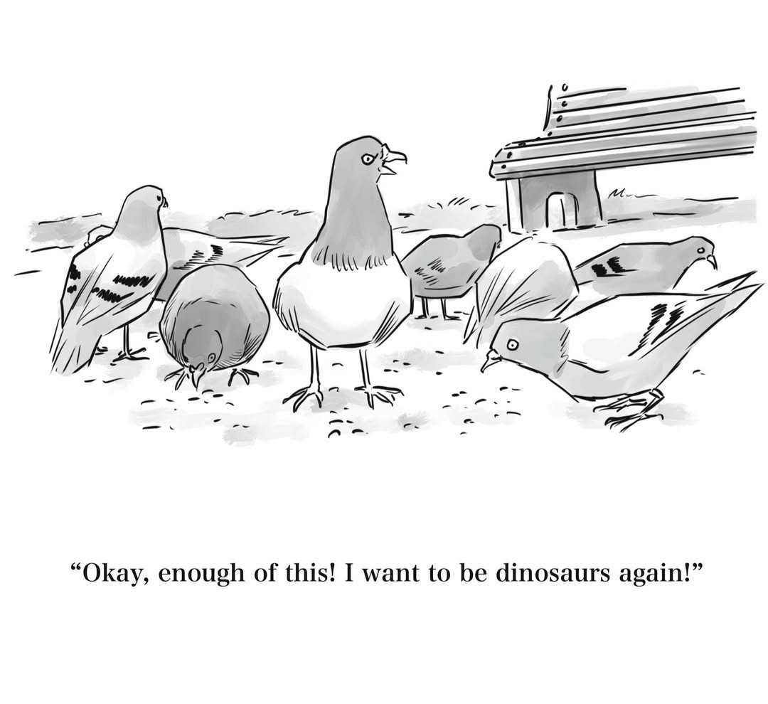 Dinosaurs had tons of different sizes and niches. We didn’t extinct literally all megafauna - bears, elk, ostriches (literal dinosaur!) still exist and are so common that they’re often nuisances.