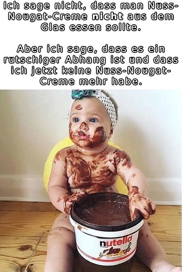 - So eine Verschwendung von Nahrungsmitteln (Das Baby patscht in die Nutella mit den Händen, das würde ich danach nicht mehr essen wollen.)