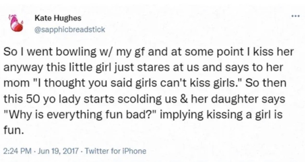 The scenario we’re discussing involves a child old enough to start asking questions about people kissing. Of course dealing with a literal toddler would be different.