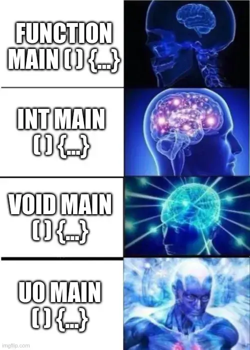 Main;at the end? Is this like a scripting language where having something likemain()is just an idiom? Also isprintf()like built-in or something?Yes, it is the scripting language of TempleOS.