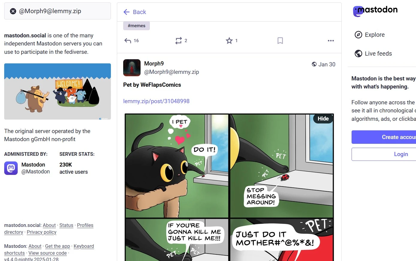 @4Robato @Morph9 yeah its not great, now Im trying to just open lemmy in my browser and when I want to comment I can copy the fediverse link and open it in mastodon, but at that point having a separate lemmy account is probably better