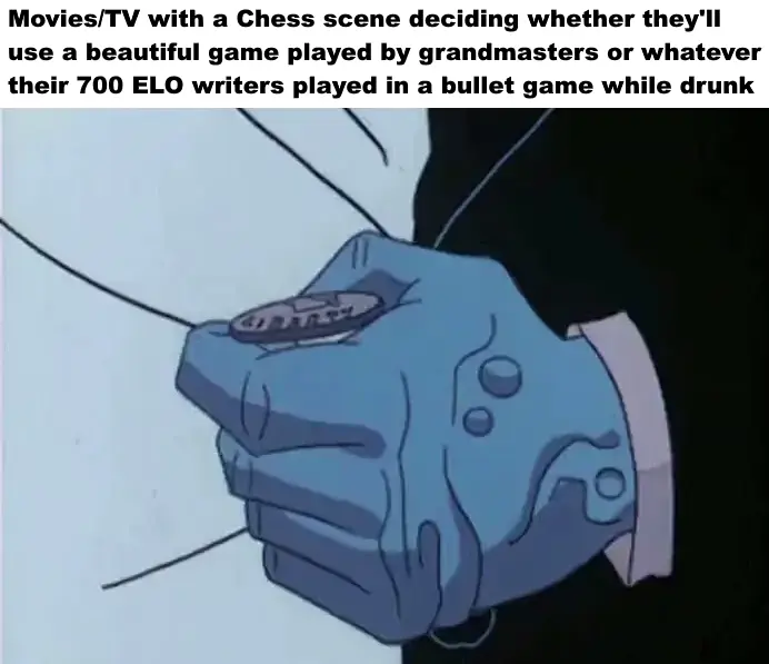 Then a random person walks by, usually the idiot comic relief, moves a random piece and yells CHECKMATE.