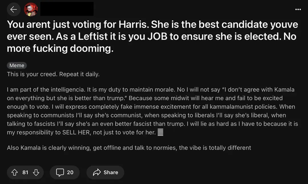 “Hello I’m an anonymous person on the Internet and if I say anyone’s name I will literally be murdered, so you just need to Do Your Own Research”
